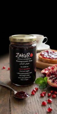 The jam only contains 2 ingredients. Pomegranate fruit grown in Egypt and sugar.